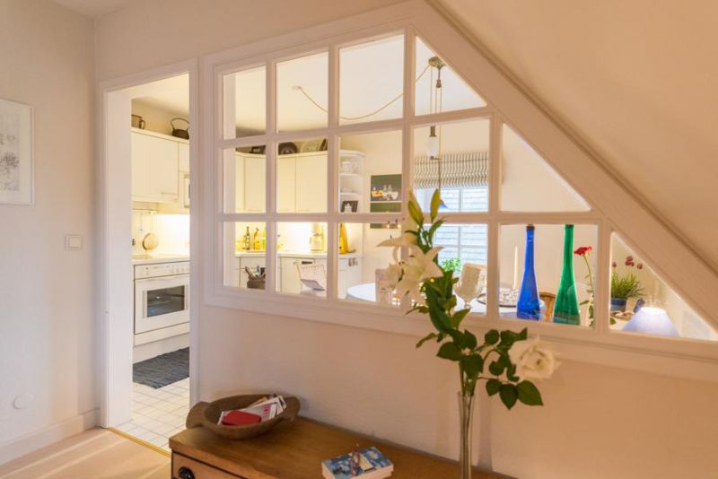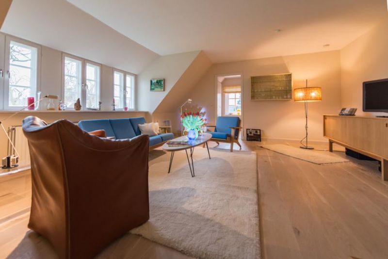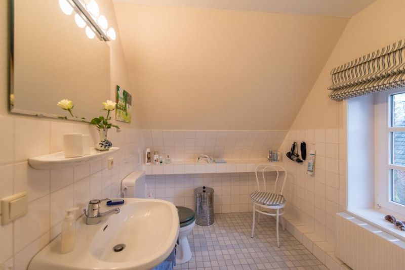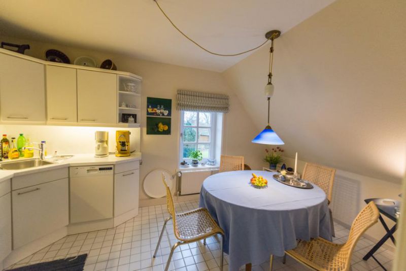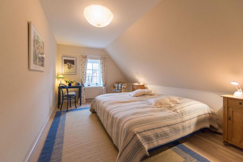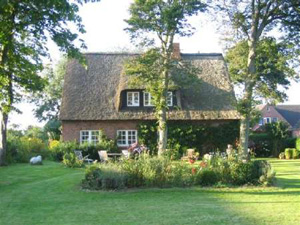 Auf einem großen Grundstück von 1700m2 steht das alte Bauernhaus von 1872 unter Reet. Abseits der Dorfstraße über einen kleinen Privatweg zu erreichen, finden Sie Ihr Feriendomozil mit allem Drum und Dran (ca. 875 qm ) in der 1.Etage. Der Blick aus dem Wohnzimmerfenster erschließt Ihnen die verschiedenen lauschigen Sitzmöglichkeiten im Garten zum Verweilen. Die Wohnung wurde vor kurzem komplett renoviert und verfügt nun über einen Dielenboden.